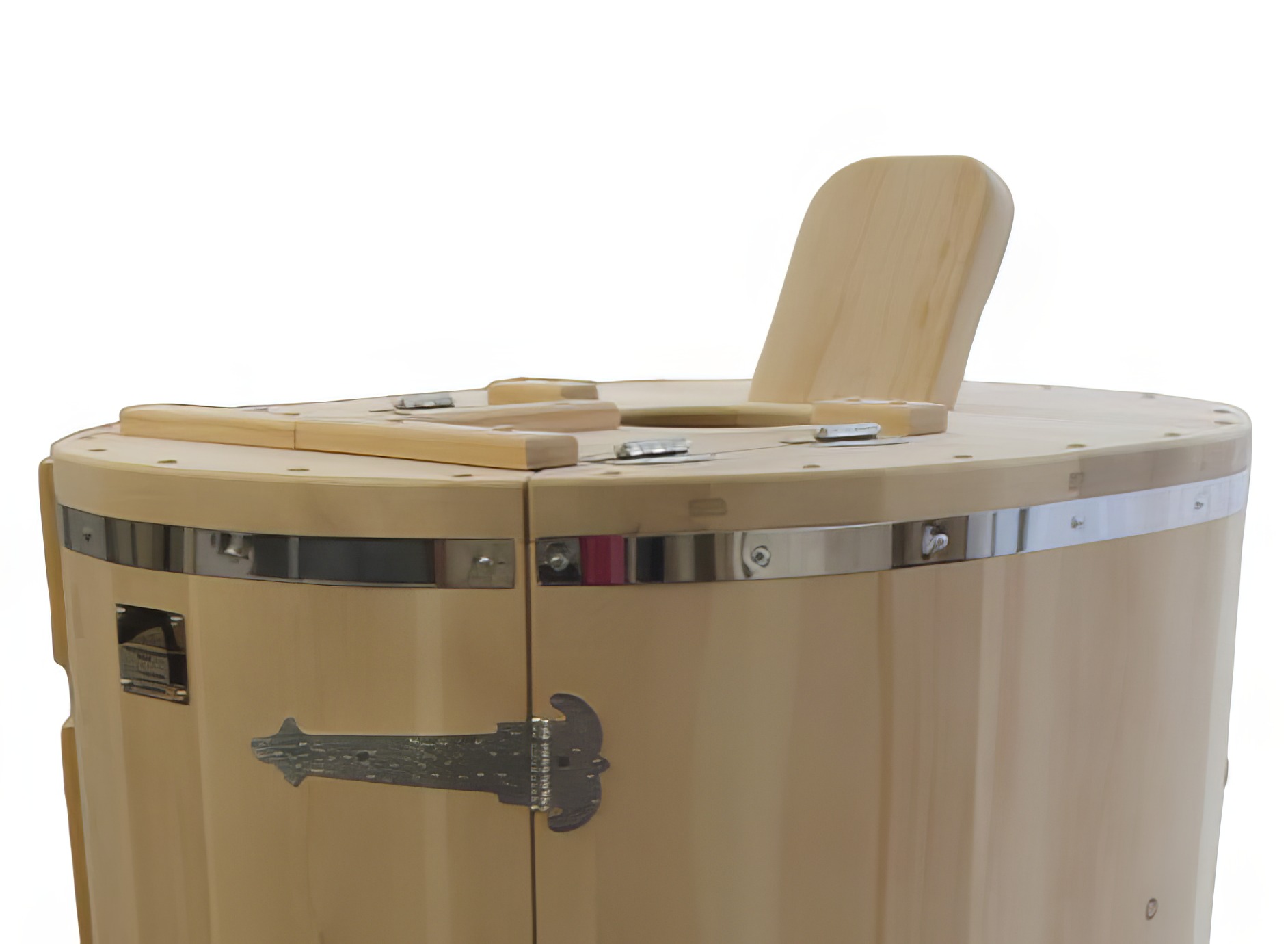 Овальная фитобочка из кедра - это мини парная, которую можно использовать не только в спа-салонах, но и дома. Овальная модель более просторна и удобна в использовании. Толщина стенок составляет 25 мм. Верхний скос делает положение головы более комфортным и улучшает обзор. Она оборудована откидными створками, дверцей и отверстием для головы. Во время парения человек сидит внутри кедровой бочки, а голова находится снаружи. Благодаря этому исключается возможность перегрева. Подлокотники из кедра, встроенные ручки на створках и двери делают эксплуатацию более удобной.