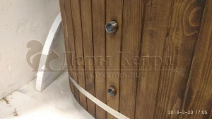 Это купель с внутренней овальной чашей, которая изготовлена из современного прочного и термоустойчивого материала (композита). Форма чаши обеспечивает комфортную посадку внутри изделия. Для удобного использования купель оснащена приставной лестницей. Обручи из нержавеющей стали декорируют купель с композитом и равномерно распределяют нагрузку во время процедур.