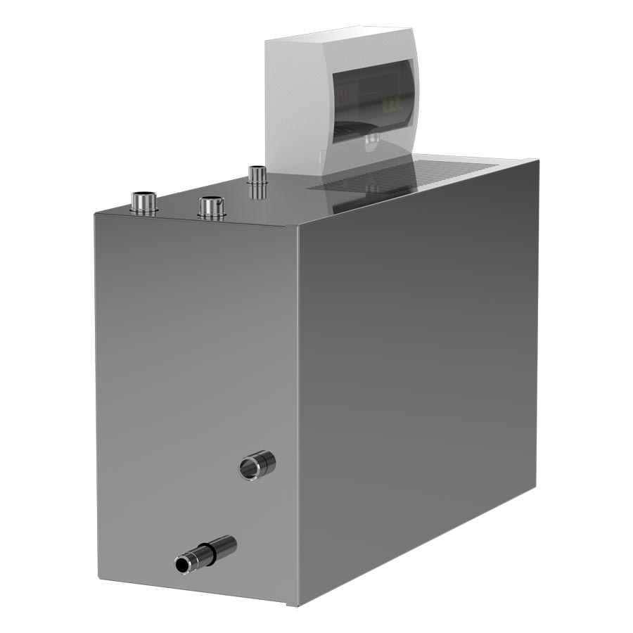 Парогенератор проточный с выносным пультом управления, 15 кВт Проточные парогенераторы подключаются к водопроводу и автоматически добавляют воду в прибор при ее расходовании. Парогенератор служит для образования пара в саунах, хамамах, банях и душевых кабинах. Мощность стоит выбирать в зависимости от объема парной. Для удобства пользования парогенератор имеет выносной пульт управления, который позволяет установить температуру, мощность и время процедур парения. При достижении необходимой температуры происходит автоматическое прекращение подачи тепла для нагрева воды. При снижении температуры более чем на 3°С температурный датчик снова включает подогрев. Таким образом время непрерывной работы парогенератора составляет более 12 часов. , ,